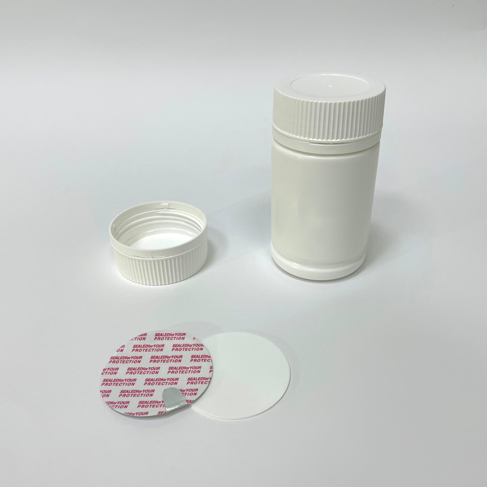瓶蓋含PE發泡墊片、熱感應封口鋁箔。
